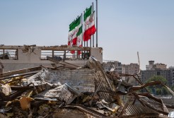 Debris of the main entrance of the Evin prison, which is destroyed in Israeli strikes, is pictured in northern Tehran, Iran, on July 1, 2025. A group leveraged dozens of social media accounts and “routinely used” AI-generated imagery and video to stoke unrest among Iran’s population, according to Citizen Lab.