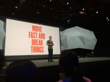 “Move fast and break things” Facebook CEO Mark Zuckerberg onstage at the F8 conference 2014. (Mike Deerkoski via Wikimedia Commons, CC BY 2.0, https://creativecommons.org/licenses/by/2.0/)